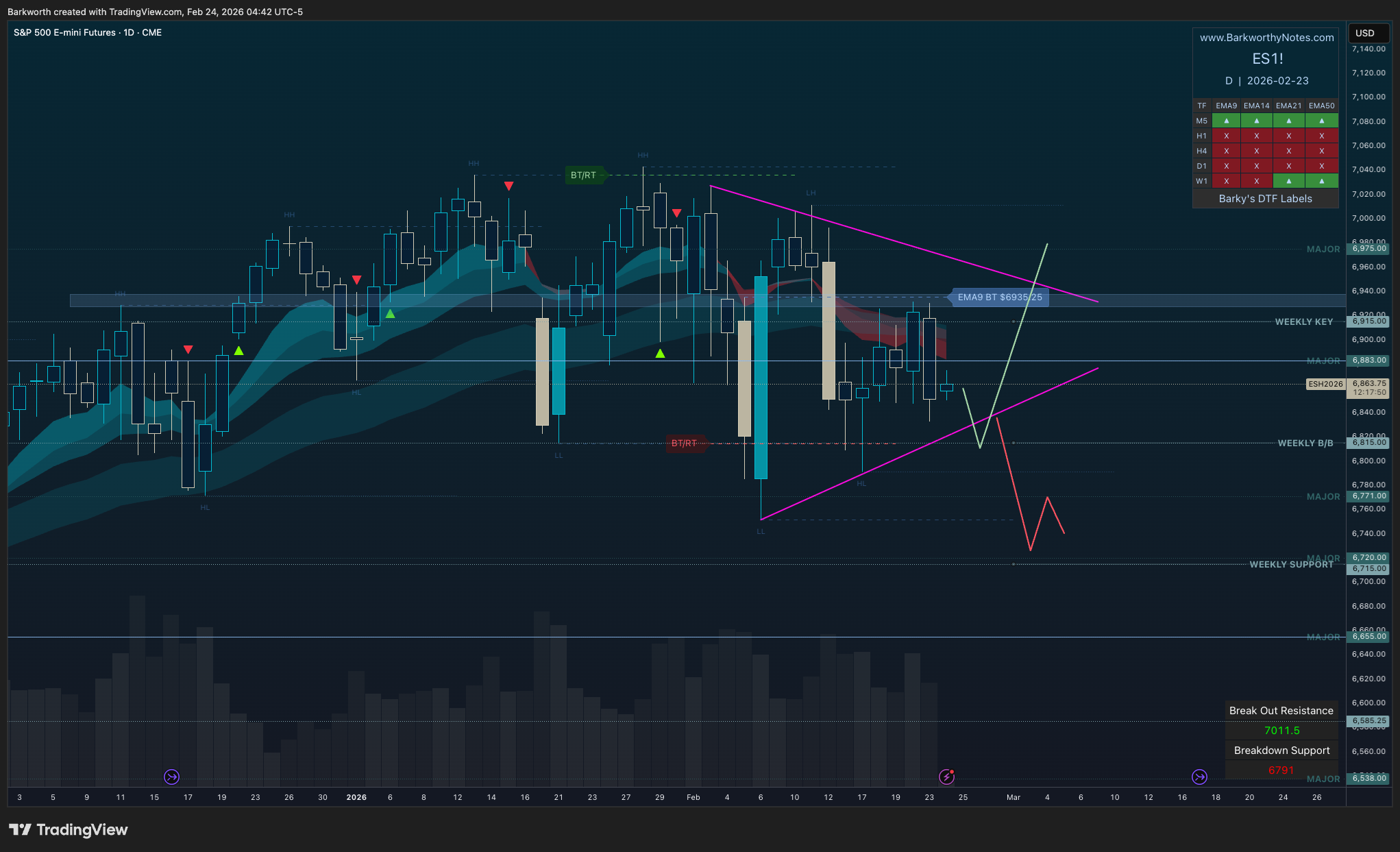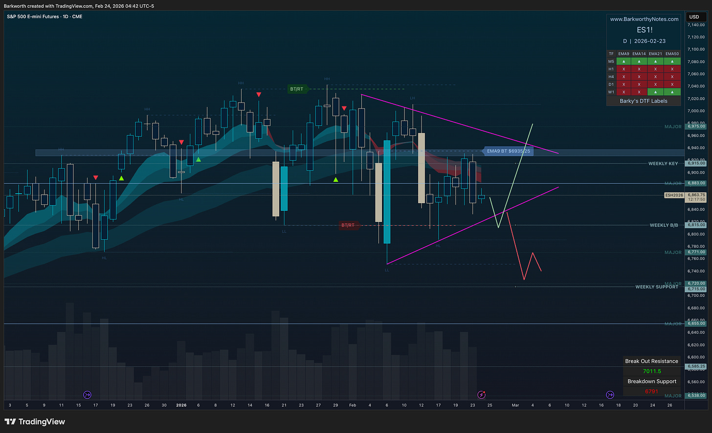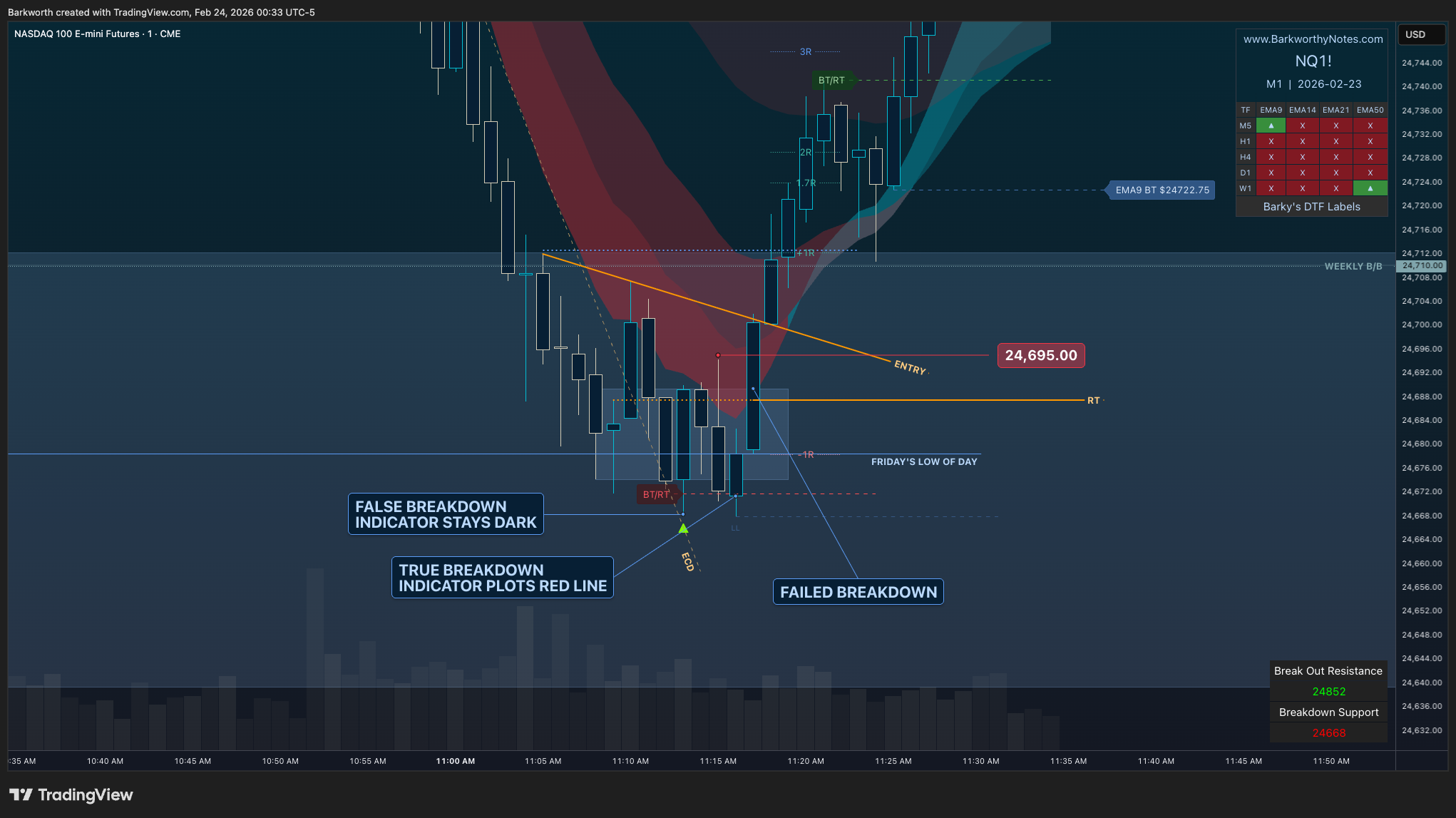 Breakdown Setups Above Key Support - Trap Long, or Trap Short - Feb 24 Plan