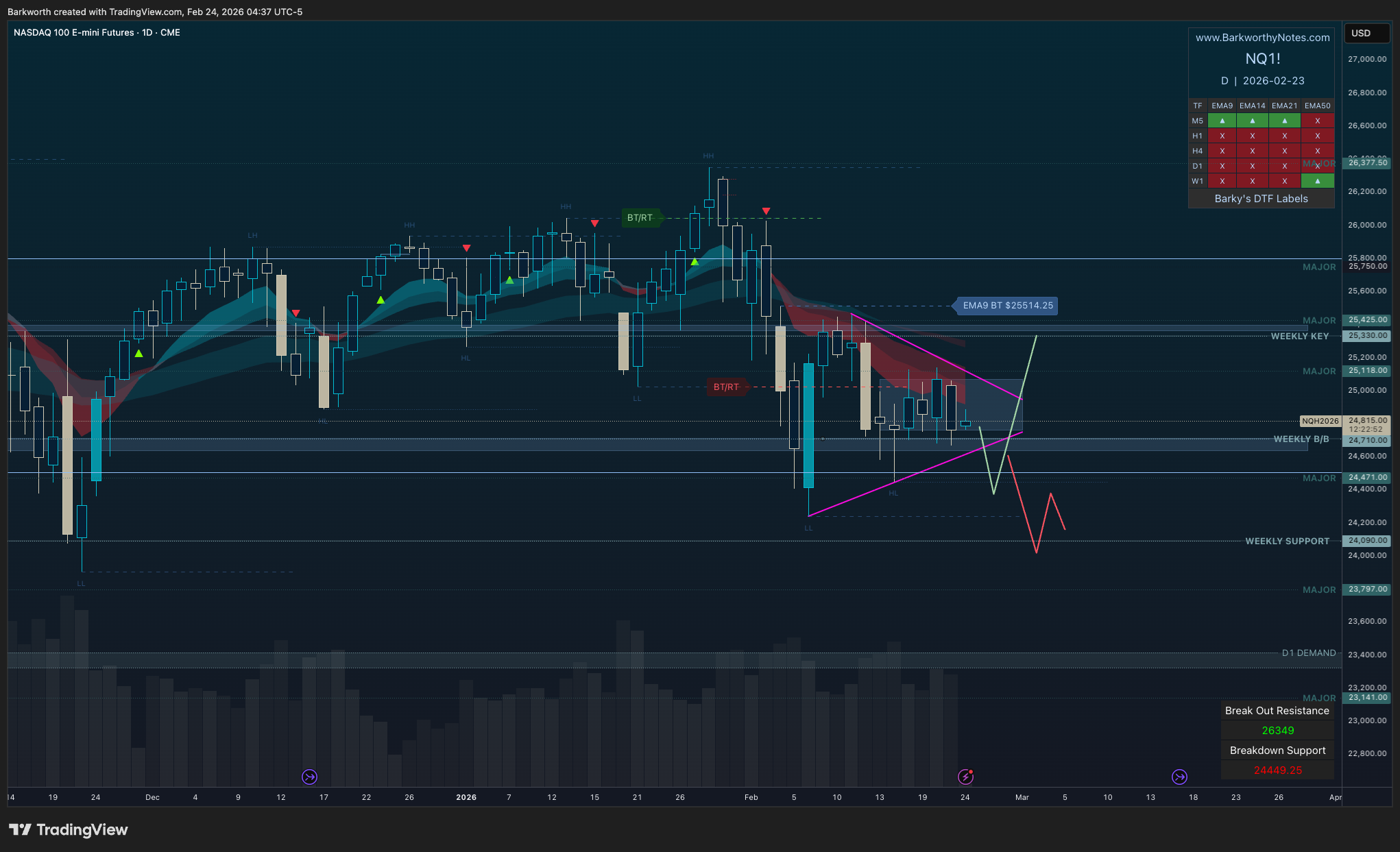 $NQ_F Daily Chart - Weekly EMA9 rejection for a lower high, yesterday’s bull traps confirm today if the daily EMA9 rejects price.